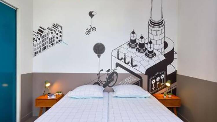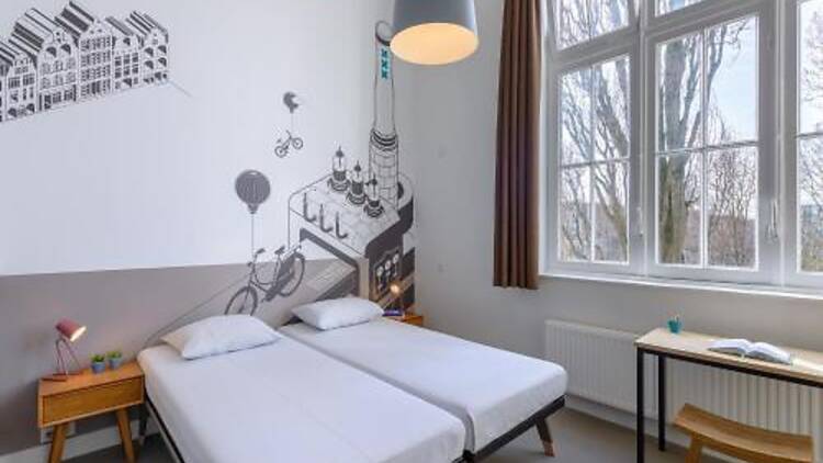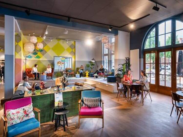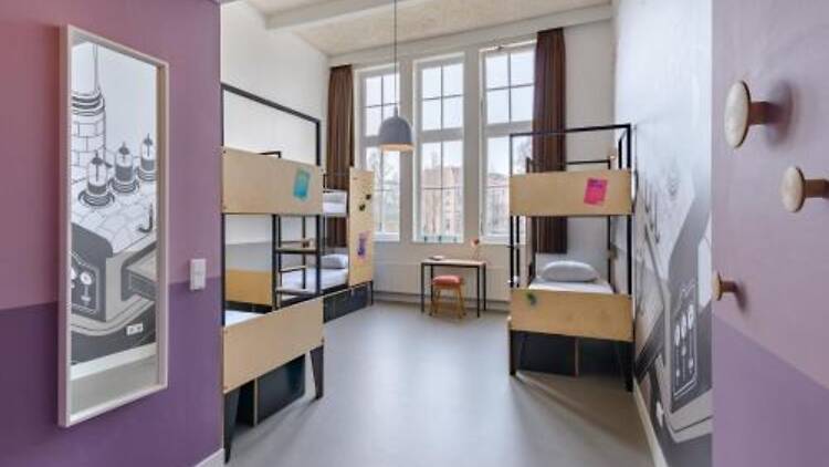 This design hostel Stayokay Hostel Amsterdam Oost is 3 km away from the city centre. It shares its building with a cinema and theater and is situated in a former school in the Zeeburg district. You have easy access to Dam Square which is 3.6 km away. Free WiFi is available throughout the whole building.
