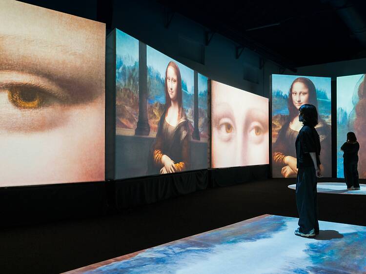 Beyond his intricate works of art, the exhibition also celebrates da Vinci’s genius as an inventor with ideas far ahead of his time. You can marvel at full-scale recreations of groundbreaking inventions from his notebooks, alongside original pages of his sketches and writings refracted through light, scale and cutting-edge technology.