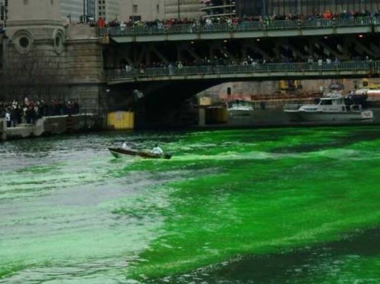 A tradition since 1962, representatives of the Journeymen Plumbers Local Union 130 pour dye into the Chicago River on the morning of the annual St. Patrick's Day Parade, turning the water a bright shade of green. The dye is vegetable-based, so the river typically reverts to its usual murky shade by the end of the weekend. The Chicago River dyeing takes place between Columbus Drive and Orleans Street, so snag a spot along Upper Wacker Drive for the best sights. For more viewing locations, check out our guide to the best places to watch the Chicago River dyeing.