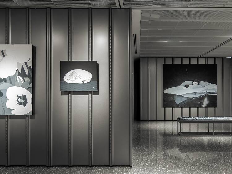 Encounter the narrative of a curious cat as told through the monochrome depictions of Japanese contemporary artist TIDE, whose first solo exhibition in Hong Kong is now on view at WKM Gallery in Wong Chuk Hang. Diving into themes of home life, interpersonal connections, childhood innocence, nostalgia, and the passing of time, ‘EDIT’ portrays naive curiosity and the journey of growing through the artist’s signature feline character and his deliberate simplicity in choosing the absence of colour for his works.