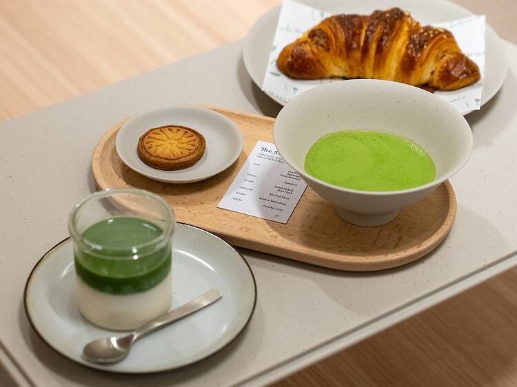 Aokomi has three grades of single-origin matcha you can try as thin usucha (from $68). For something more indulgent, there is the velvety koicha ($120) with rich flavour and texture. Guests can also enjoy matcha lattes ($65 hot, $68 cold), the Americano-inspired Ao-Cano ($65), or a strawberry matcha cappuccino ($60 hot, $62 cold). Aokomi also serves baked goods like the vegan tencha pistachio nut butter on sourdough ($105) and desserts like the matcha affogato with shiratama ($85) and the three-layer milky matcha pudding ($42). If you’re just getting into the wonderful world of matcha, Aokomi also stocks teaware, tea products, and tools for making matcha drinks at home.