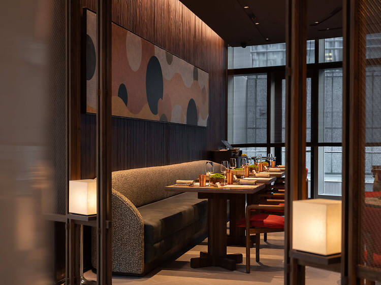 For carnivores searching for a refined restaurant, Gyu+bar by Miyoshi combines Japanese elegance with French finesse to create decadent fire-grilled dishes. Gyu means ‘beef’ in Japanese, so unsurprisingly, beef is the star of the show here. Sink your teeth into indulgent plates like Wagyu char siu brisket and roasted lily bulbs in romesco sauce, Wagyu harami with toasted hazelnut gremolata in a sticky teriyaki sauce, Wagyu ichibo (top sirloin cap) on French butter-infused potato purée, and more. Alternatively, the restaurant’s menu also offers seafood dishes such as lobster with handmade kabocha gnocchi and charcoal-grilled monkfish with hay-smoked salmon roe with beurre blanc espuma. Be sure to pair your grilled dishes with Gyu+bar by Miyoshi’s curated selection of wines and sakes, cocktails, and mocktails.
