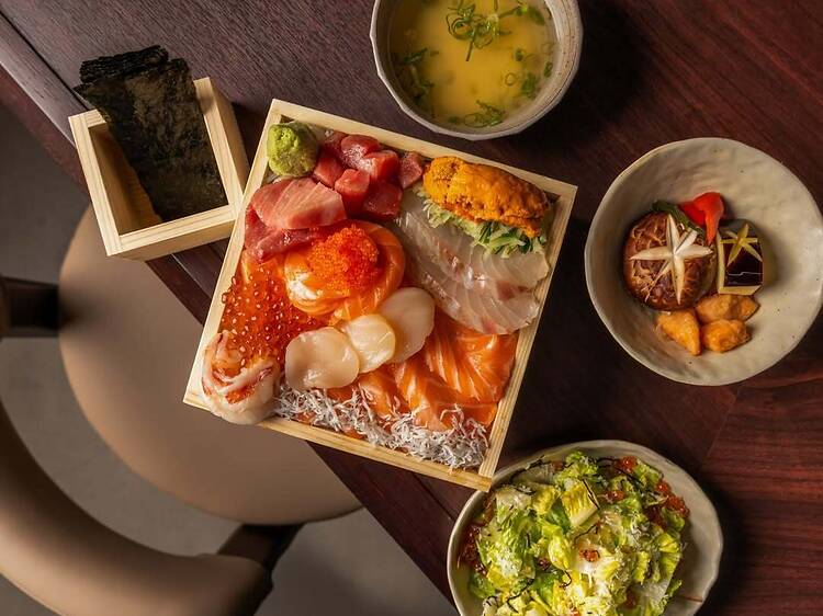 Hong Kong’s culinary scene is no stranger to refined Japanese restaurants, but Roru Baru in Wan Chai is here to shake things up. This neon light-lit eatery specialises in creative handrolls, all made in front of your eyes at the chef’s counter. Kick things off with starters like negitoro dip to enjoy tempura-fried seaweed with diced toro or potato salad topped with ikura and a soft-boiled egg. Then, get stuck into handrolls such as akami tuna with whitebait, aka ebi with salsa, medai with dry-aged bream with shiso leaves, and plenty more.