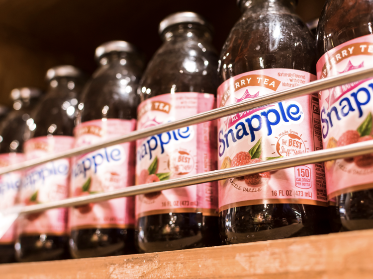 Now, back to those glass bottles, which are practically collector’s items at this point. Visitors can choose from five classic Snapple flavors: apple, peach tea, kiwi strawberry, lemon tea and zero sugar peach tea.