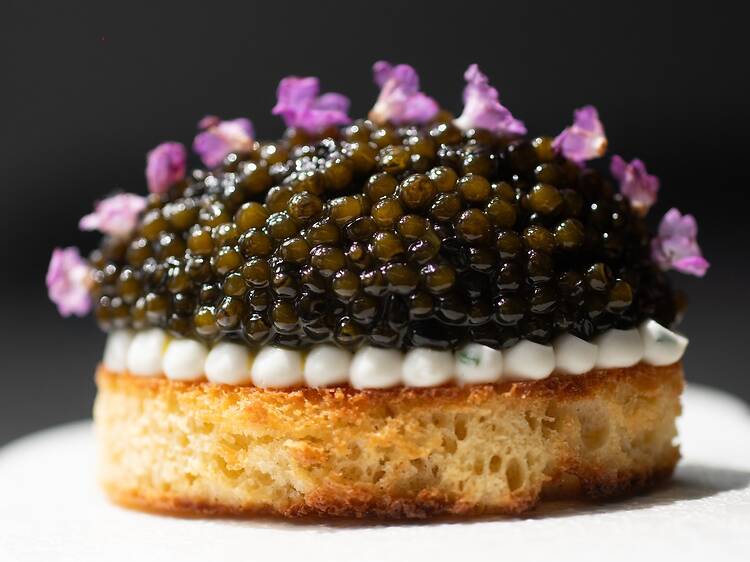 It’s live theater of sorts, with chefs scoring proteins and presenting showstopping dishes: king crab under a wreath of impossibly thin vegetables and dill flowers and a slice of pillowy broiche topped with a mound of caviar. The pièce de résistance comes to the stage early: the famous dry-aged duck pie. Served since the restaurant’s inception, the star dish is layered with ground duck leg and foie gras and enveloped in pastry dough. It’s presented to the audience, still uncooked, only to make its grand return at the finale, burnished and golden brown. It’s savory and rich, served with a ladle of peppery cognac sauce.