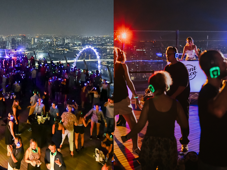 Switch on your headphones and boogie down under the stars, with panoramic city views and three DJs to choose from