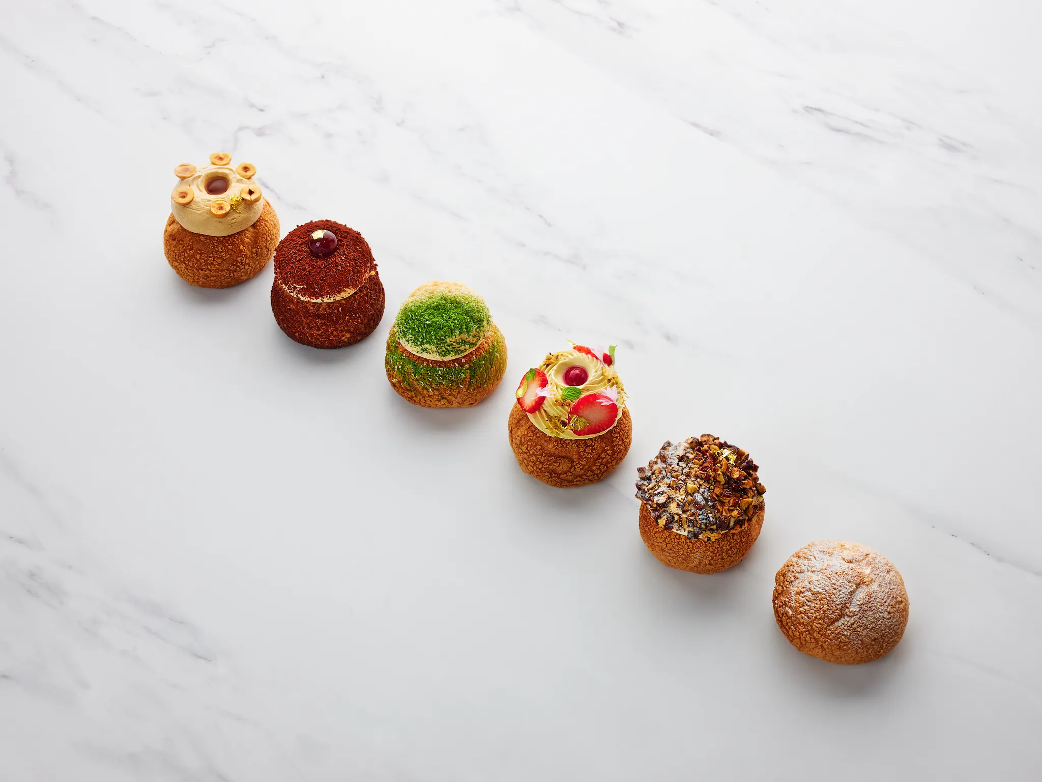 Must-tries are the beloved choux pastries (from $11), which come in flavours like classic Tahitian vanilla, uji matcha kinako, and berries pistachio. In characteristic attention to quality and detail, Makoto uses Hokkaido flour (which has higher gluten content) to ensure that these delicate pastries hold the fillings and toppings. Similarly, AMI Patisserie's seasonal fruit and vegetable tarts swap out the usual tart base with layers of filo pastry brushed with honey and butter – all the better to withstand Singapore's humidity. Other ala carte items include parfaits (with premium Japanese fruits like Amaou strawberries and Shizuoka melons) and savoury croissants.