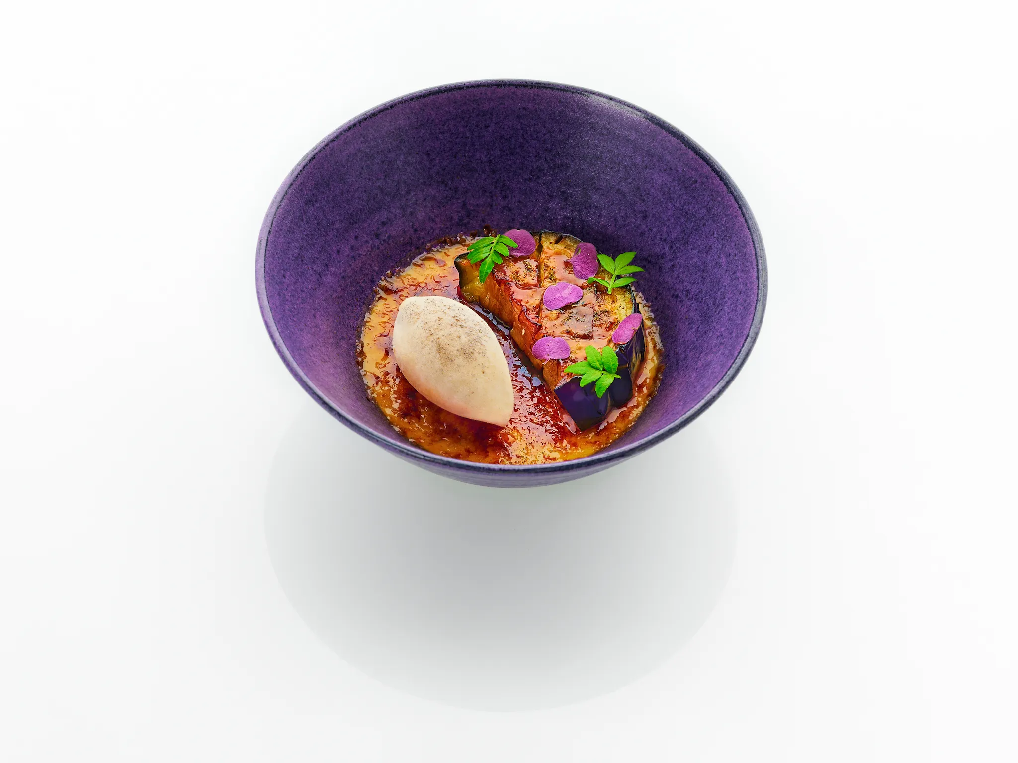 Don't be surprised to find vegetables as the star in AMI Patisserie's pastries too. You can try some of these in the Chef's Table Discovery Experience, which includes a tomato tartlette on a crispy bed made of 24-months aged parmesan cheese and the Nasu Brulee, featuring eggplant custard with a caramelised sugar crust, topped with seared eggplant and miso ice cream. This curated menu is prepared and presented à la minute, accompanied by warm service and personal attention from Makoto himself.
