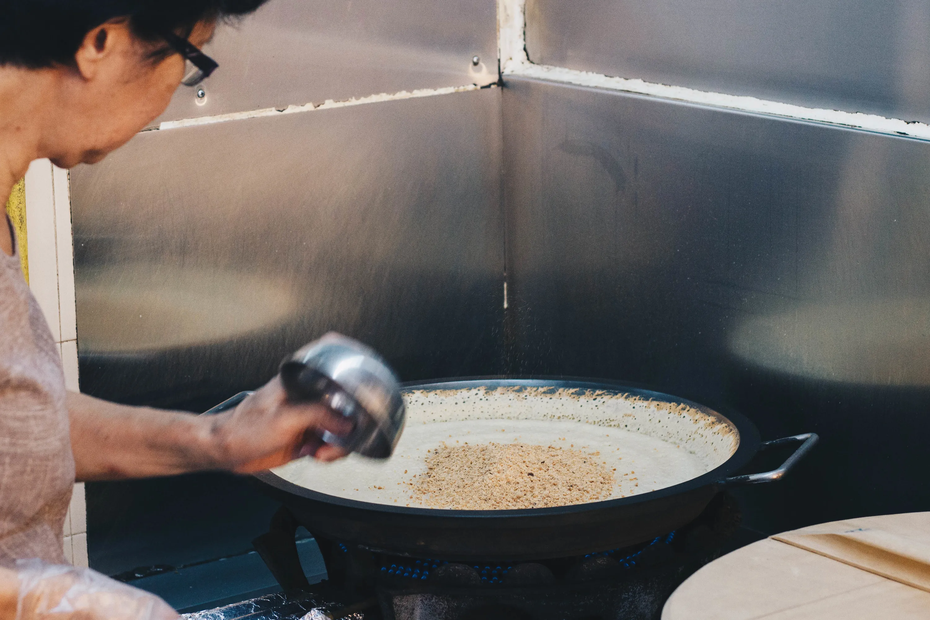 “You can fill the pancakes with anything,” Beng Hoon shares as she prepares a fresh batch, folding the pancakes over with care. Some of her previous iterations include otah, durian paste, and pork floss but she took them off the menu as they were too expensive. The premium ingredients drove up the price, and people weren’t willing to pay. These days, she sticks to a classic selection: peanut, coconut, and red bean. Every day, Beng Hoon opens the stall at 6am and closes by 4pm. It’s a tough job for the 67-year-old, having to stand anywhere between eight to ten hours. When asked if she enjoys being a hawker, she shakes her head.