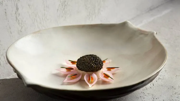 Like the Oignon Jamboree, which is a stunning display of onions prepped five-ways: in a parfait, puréed, pickled, cooked down into a broth, and made into oil. Each a showcase of how onion need not always taste sharp and assertive. Pickled pearl onions are sweet and crisp, lending a nice contrast to an unusual onion parfait that comes brimming with umami thanks to the addition of smoked eel and a crowning of the restaurant-exclusive Oscietra Prestige Caviar.