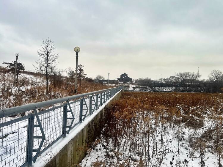Lodged in the heart of Bridgeport, Palmisano Park is a 26.6-acre green space offering scenic overlooks, bird-watching opportunities and a lush wetland habitat that feels worlds away from the surrounding neighborhood. It’s a hidden gem in every season, but winter is when Palmisano truly shines—glimmering like a star atop a Christmas tree.