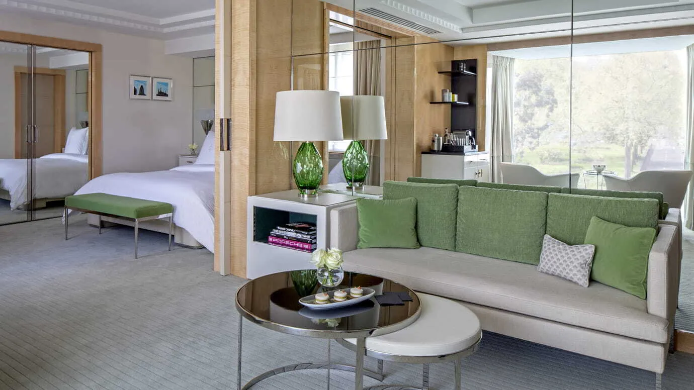 The layout is logical and comfortable with a plush king bed with soft linens, a vanity with a built-in LED mirror, a compact walk-in wardrobe and a clean, modern colour palette with lacquered wood, mirrored doors and green velvet accents. I loved how everything was visible and accessible so you're not opening seventeen drawers to find a hairdryer. Which, speaking of, you get a Babyliss Pro hairdryer and a Remington hair straightener, which is honestly a small but wonderful touch, especially if you're staying for a big event or meeting.