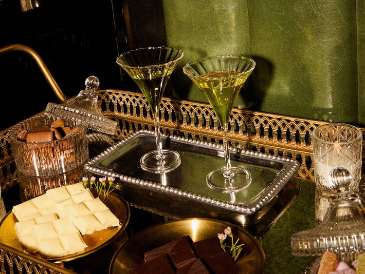 For those who prefer something moodier, “Slow Sippers” leans spirit-forward, with layered drinks like Shades of Green, blending nori, apple, sherry and Irish whiskey. There’s also Green Hour, a structured absinthe and Chartreuse experience where guests can dilute French spirits to their taste, paired with small bites.