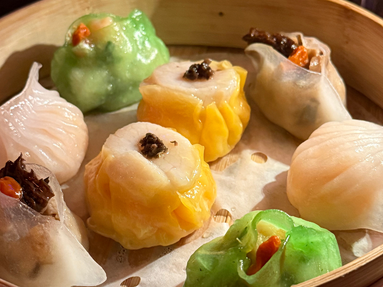 Their strange-flavour cold-cut chicken is thick slices of tender meat resting on a pool of fiery chilli oil flecked with hundreds of sesame seeds. Chopped peanuts add a subtle nutty sweetness, though I prefer it tempered with a creamy sauce, like at Spice Temple and Spicy Joint. The daily selection of steamed dim sum is some of the best I’ve had in recent memory – each translucent parcel crafted by hands who care, featuring a delicate wrapping and juicy filling. The scallop and prawn siu mai and mushroom dumplings are standouts.