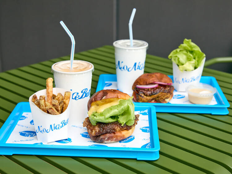The menu features 13 burgers, from the classic Neo Nice Burger with the restaurant’s signature tomato sauce to the Neo Teriyaki Burger and more adventurous options like the Caesar Bacon Burger and Tandoori Chicken Burger.